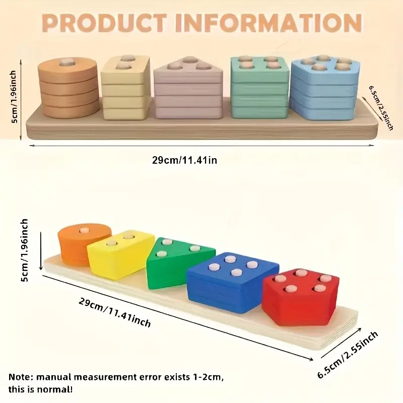 ⭐ Drewniana układanka edukacyjna to zabawka, która rośnie razem z dzieckiem – najpierw służy jako prosta zabawa w dopasowywanie, a później staje się pomocą w nauce liczenia, rozpoznawania barw i rozwijania kreatywności.