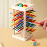 Ta gra to świetny wybór na prezent – estetyczna, edukacyjna i angażująca. Dzieci uwielbiają obserwować, jak kule spadają, a każdy ruch patyczka wywołuje emocje i śmiech.