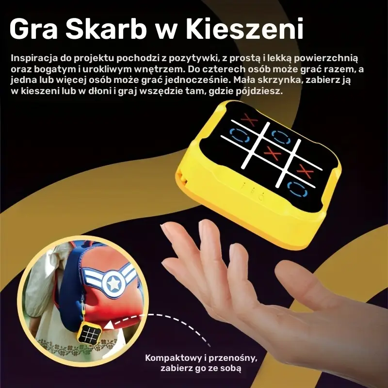 Kółko i krzyżyk to gra, którą każdy z nas zna z dzieciństwa – prosta, szybka i zawsze pełna emocji. Teraz możesz cieszyć się nią w nowoczesnym, przenośnym wydaniu, które łączy klasyczną rozrywkę z nowoczesnym designem. To niewielka, ale niezwykle angażująca gra, która sprawdzi się w domu, szkole, podróży czy podczas spotkań z przyjaciółmi.